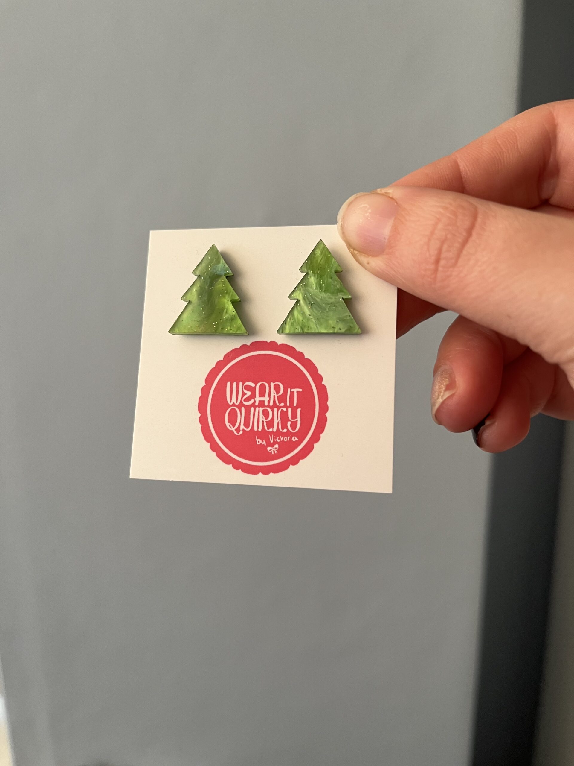 Green Christmas Tree Stud Earrings